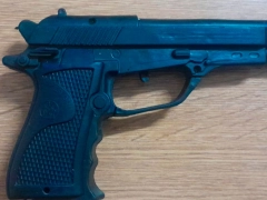 En el marco del operativo, la Policía demoró a un hombre que, al advertir la presencia de los uniformados, intentó darse a la fuga. Durante la requisa, se constató que llevaba un arma de plástico negra con forma de pistola y un proyectil deformado.
