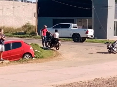 El accidente de tránsito ocurrió en la intersección de Avenida Uncal y calle Allais. Afortunadamente, no hubo heridos, pero sí importantes daños materiales, ya que la moto terminó destrozada en su parte delantera y el auto cayó en alcantarilla.