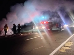 Un auto se incendió por completo en la Ruta 12, km 206, afectando también el pasto de la banquina. No había ocupantes en el vehículo. Bomberos y Policía trabajaron en el lugar, y se reguló el tránsito hasta sofocar el fuego.