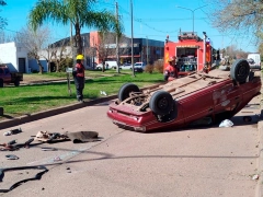 El accidente involucró a un Volkswagen Polo blanco, conducido por una mujer de 41 años, quien circulaba por Zeroli en sentido sur-norte. Por causas que aún se investigan, el vehículo impactó en la parte trasera derecha a un Renault 11 color bordó, que era conducido por un joven de 25 años. Este último transitaba por Rivadavia en sentido oeste-este y, producto del fuerte choque, terminó volcando sobre la calzada.