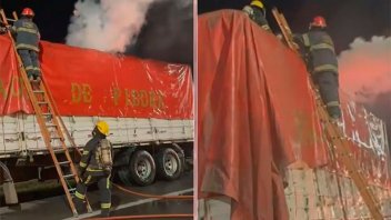 El fuego pudo ser controlado por los Bomberos. Al parecer le habrían arrojado un artefacto inflamable en uno de los acoplados. El vehículo transportaba carbón.
