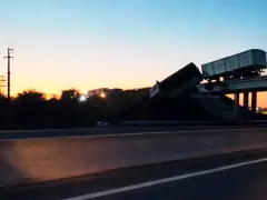 Un camión quedó colgado de un puente tras perder el control en la autopista Rosario–Santa Fe