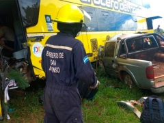 Un siniestro vial ocurrido este jueves sobre la Autovía 14 dejó como saldo un muerto y varios heridos. El accidente, ocurrido a la altura de San Vicente, Misiones involucró a una camioneta y un colectivo de larga distancia.