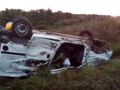 Como concesiona del violento accidente, el rodado de menor porte terminó volcado y con importantes daños materiales.