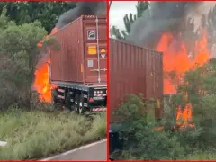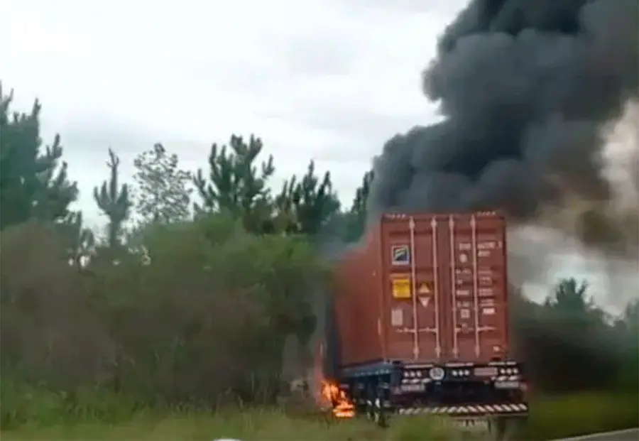 Como consecuencia del fuerte impacto, el automóvil quedó atrapado debajo del camión, y su conductor falleció en el acto. Los bomberos de la ciudad de Santo Tomé intentaron sofocar el fuego, aunque el cuerpo de la víctima fue alcanzado por las llamas.