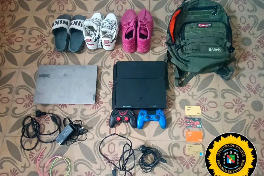 A través del seguimiento de cámaras y recorridas en la zona, se determinó que los elementos sustraídos habían sido ocultados en inmediaciones de las calles Courreges y Sebastián Vázquez. En el lugar, se encontró una mochila verde escondida entre un ficus, que contenía la PlayStation 4, una laptop, un cable USB, dos transformadores, dos joysticks y unas ojotas Nike, todos reconocidos por el damnificado.