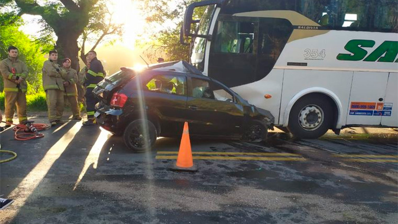 Según informaron fuentes policiales, el siniestro se registró este domingo a las 5.51 cuando un Volkswagen Gol se cruzó de carril sobre la Ruta Nacional Nº 38 e impactó contra una unidad de transporte interurbano.