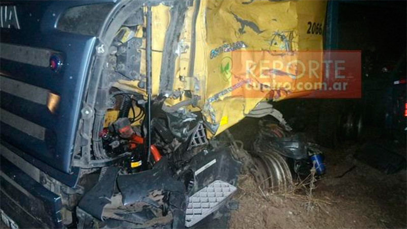Un terrible accidente de tránsito ocurrió pasadas las 20:30 de este jueves, sobre la Ruta nacional 18. Como producto del impacto casi frontal de dos camiones, uno de los choferes murió y el otro sufrió lesiones gravísimas. <b>Fotos</b>.