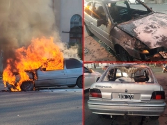 Un vehículo se incendió en su totalidad en la intersección de calle Bernardo O'Higgins y Avenida Zanni. Se trataba de un Ford Escort que, según testigos, comenzó a emitir humo por el capot cuando el conductor, acompañado por su hijo de entre 7 y 10 años, se detuvo en el semáforo rojo.