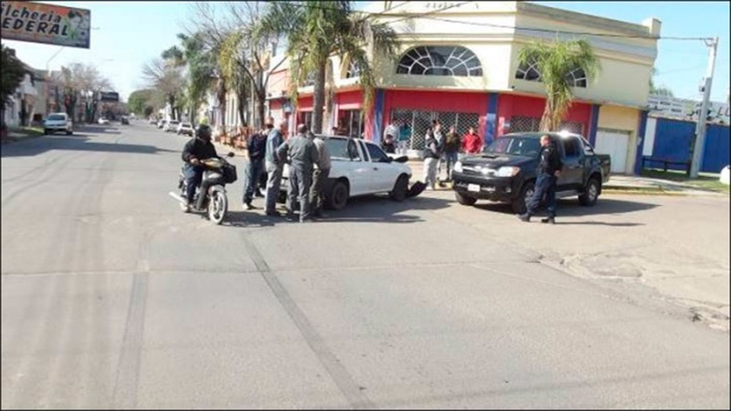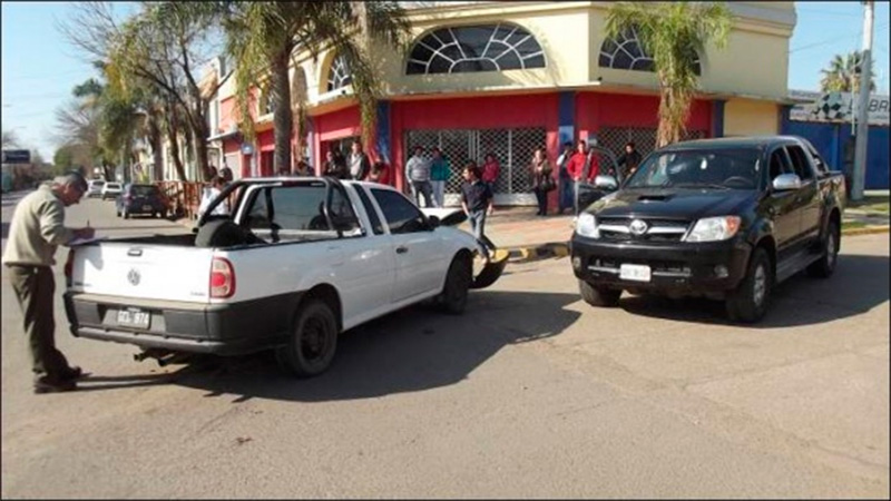El fuerte impacto hizo que la Toyota quedara hacia el lado inverso al que transitaba, y que la Saveiro sufriera importantes daños materiales. Ocurrió alrededor de las 11,40 horas de este domingo en el centro de Federal. <b>Fotos</b>.
