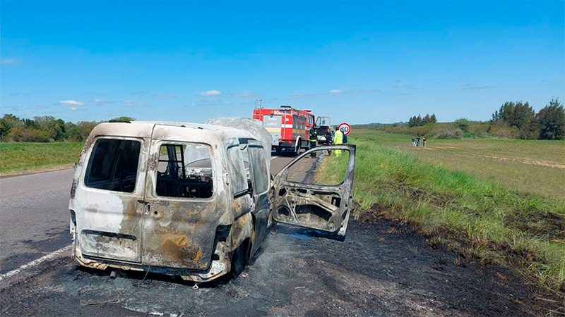 En el lugar intervino personal de Comisaría de Sauce y se constató el incendio de una camioneta utilitaria perteneciente a una empresa distribuidora de bebidas, oriunda de Concepción del Uruguay. El vehículo, marca Citroën, circulaba en sentido norte a sur por la autovía y se dirigía hacia el departamento Gualeguaychú.