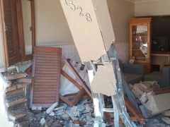 La propietaria de la casa, quien se encontraba realizando tareas de limpieza en su patio mientras su esposo dormía la siesta, informó sobre el accidente: “Escuché un ruido muy fuerte, pensé que se había explotado el termotanque. Cuando fui a revisar el garaje, todo estaba normal, pero al entrar a la cocina me encontré con una nube de polvo producto del impacto”. La camioneta se metió hasta el living, causando destrozos en paredes, aberturas, e incluso parte del techo.