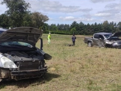 Según se informó, por causas que se investigan, una camioneta Volkswagen Amarok, en la que viajaba un hombre, chocó contra un automóvil Kia Carnaval, en el que circulaban cinco personas.