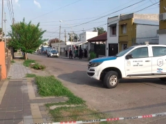 El automóvil Peugeot 206 rojo permanecía estacionado sobre calle Gualeguaychú y fue cubierto por un amplio operativo policial para preservar la escena a fin de determinar formas y circunstancias de los hechos.