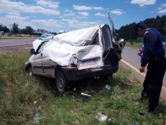 El hecho ocurrió este viernes al mediodía en el kilómetro 249 de la Autovía Gervasio Artigas. La conductora de una Citroën Berlingo perdió el control del vehículo y terminó en el cantero central.