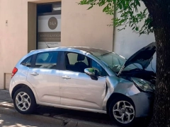 Un Citroën C3 sufrió un accidente luego de que su conductora, al doblar por la calle Italia hacia Andrade, sufriera una indisposición al llegar a la mitad de la cuadra. Perdió el control del vehículo, subió a la vereda, impactó contra un auto estacionado y terminó incrustándose contra un árbol.