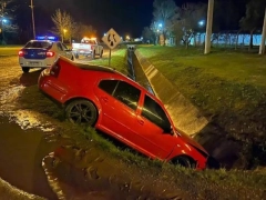Un auto cayó a un desagüe y el conductor dio positivo en alcoholemia en Urdinarrain. El accidente ocurrió esta mañana en la intersección de dos bulevares y fue protagonizado por un joven de 24 años que superó ampliamente los límites de alcohol permitidos.
