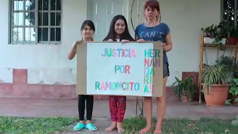 Entre los que aparecen en las imágenes con carteles que piden justicia, está el padre de Ramoncito, Gabino Grandoli. Niños, adultos y familias de Hernandarias, se sumaron a la iniciativa.