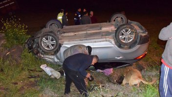 A raíz del impacto, el conductor del rodado pierde el control, terminando volcado en banquina del carril contrario, con las cuatro ruedas para arriba.