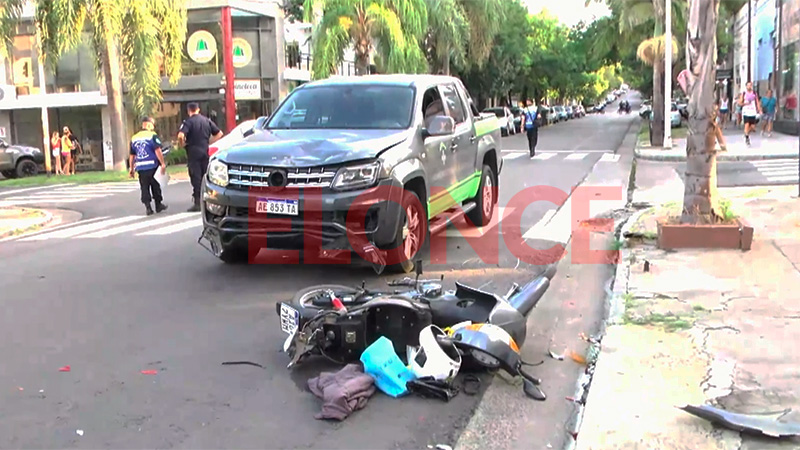 El hecho ocurrió en la tarde de este jueves. Elonce accedió al video de la fuerte colisión. Las imágenes fueron registradas por las cámaras de seguridad de un drugstore de esa zona.