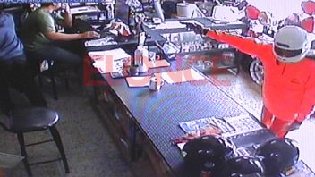 Finalmente, encerró a las víctimas dentro del baño. Las imágenes del hecho quedaron registradas en el circuito de cámaras de vigilancia y <b>Elonce TV</b> tuvo acceso a las mismas.