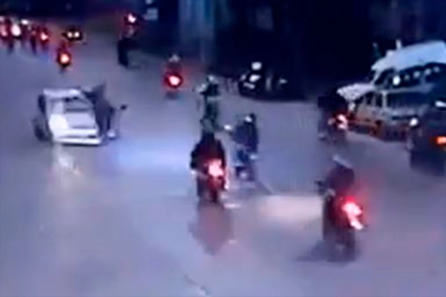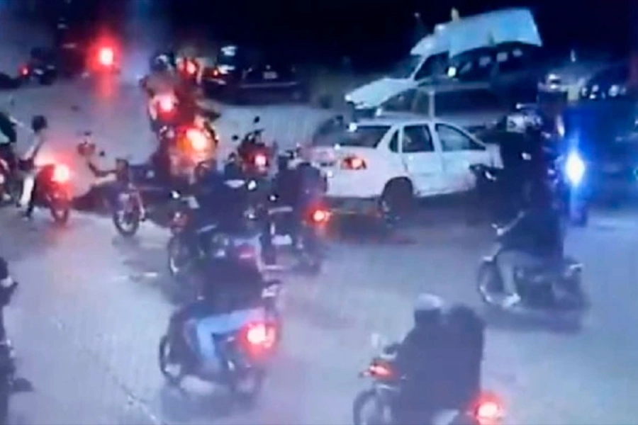 El impacto inicial desencadenó un giro brusco del automóvil hacia la izquierda, lo que hizo que el vehículo quedara en medio de la caravana, por lo que embistió al menos a cinco motos más.