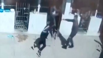 En el video se puede ver que, ante el ataque, el uniformado retrocede, cae al suelo y pierde su celular, que queda en el suelo, indicó Reporte100.7 que difundió la grabación.