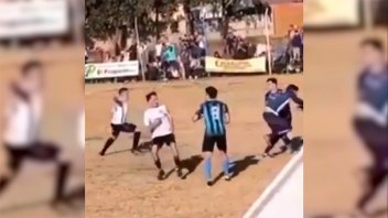 Una batalla campal entre jugadores de los clubes 25 de Mayo y Atlético Lucas González quedó registrada en imágenes a las que accedió Elonce. Los violentos incidentes ocurrieron este domingo, en el Estadio “El Pinar”, en el marco de la definición del Torneo Apertura de la Unión Deportiva de Ligas.
