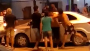 Acto seguido, los agresores quisieron escaparse y corrieron hasta un automóvil Chevrolet Prisma, en el momento en que un patrullero llegaba a la escena de los incidentes. Pero ya en ese punto era un desmadre, puesto que los vecinos del supermercado y los empleados del comercio querían detener a los tres violentos. En medio de esa discusión, un hombre con el torso descubierto se acercó y le asestó una trompada al conductor, dejándolo desmayado.