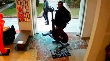 Un delincuente se robó una bicicleta fija de un gimnasio en pleno barrio porteño de Palermo, después de romper la vidriera. Todo quedó registrado por las cámaras de seguridad del comercio.