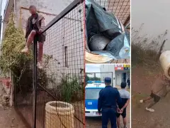 El sujeto, aún montado sobre el portón de más de dos metros de altura, estaba intentando sustraer un lavarropas y una olla, objetos que ya había colocado en el lugar para ser robados.