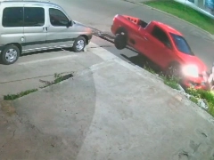 Según la cámara de seguridad de una vivienda ubicada en calle 3 de Febrero entre Vucetich y Almirante Brown de la capital entrerriana, se confirmó que una persona a bordo de una Volkswagen Saveiro, de color rojo, que impactó contra un Fiat Uno Fire blanco que estaba en la banquina, sin ocupantes afortunadamente.