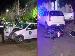 Un violento accidente en Paraná se produjo en la madrugada de este sábado en la intersección de Rosario del Tala y Ferré. Un remis blanco impactó contra una motocicleta y terminó subido a la vereda frente de un geriátrico. Como resultado, dos personas fueron hospitalizadas.