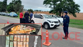 Frente a la Brigada de Delitos Rurales, “se detuvo camiones sobre la ruta para evitar que esta auto que iba a gran velocidad cruzara por el lugar”. Ahí “se baja al conductor que fue reducido y luego, con la orden del fiscal, se requisó el vehículo y se secuestraron 5.300.000 pesos en dinero de distintas denominaciones y un teléfono celular”.