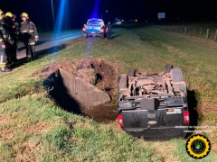 El conductor de una camioneta volcó en una alcantarilla en la ex ruta 26 y se negó a realizar el test de alcoholemia, lo que llevó a la retención del vehículo por parte de las autoridades.