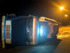 Las causas del vuelco aún no fueron precisadas y se intenta determinar cómo se produjo la maniobra que terminó con el vehículo pesado tumbado sobre el puente.