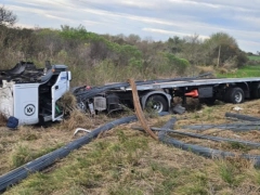 El conductor de un camión Mercedes Benz 1933 perdió el control del rodado y volcó sobre la banquina de la ruta 12, a la altura del kilómetro 505. Como consecuencia del accidente, que se registró en la mañana de este martes, afortunadamente, no se reportaron personas lesionadas; sí hubo importantes daños materiales en la unidad siniestrada.