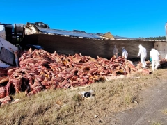 Volcó un camión y esparció su carga de reses de carne sobre la Ruta 14