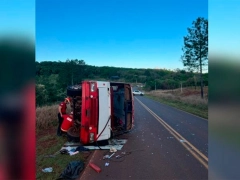 Un colectivo que trasladaba a familias de la iglesia “Asamblea de Dios” volcó en la Ruta Provincial 103 en Misiones. Al menos veinte personas resultaron heridas.
