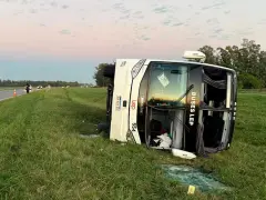 El micro de larga distancia viajaba desde Villa Carlos Paz hacia Mar del Plata cuando perdió el control y terminó volcado sobre el cantero central. Investigan si una maniobra de un camión habría provocado el accidente ocurrido durante la madrugada.