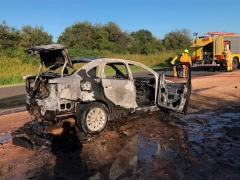 Un voraz incendio consumió un automóvil que transitaba por ruta provincial 11, en inmediaciones de una planta de silos de una empresa granera de ciudad de Victoria. Como consecuencia del incendio, que se registró en la mañana de este miércoles, el auto quedó destruido completamente, pese al esfuerzo de los bomberos que trabajaron en el lugar.