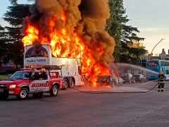Voraz incendio consumió un colectivo y un patrullero en la Terminal de Ómnibus de Rosario
