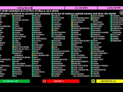 En la votación se abstuvieron trece países: Bielorrusia, Burundí, Camerún, Corea del Norte, Irán, Libia, Mali, Nicaragua, Níger, Nigeria, Rusia, Senegal y Siria.
