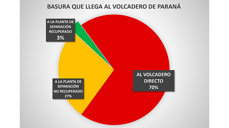 “En los 90 años de historia de este lugar, es impresionante como creció en los últimos tres años”, reveló Sánchez y apuntó a problemas en la recolección de residuos. “De toda la basura que llega a diario, el 70% se vuelca al Volcadero y la gente se amontona para recuperar lo que puede, ya sea comida para ellos o sus animales; y solo el 30% va a la planta de separación que funciona de manera limitada, siendo que tiene capacidad para hasta tres veces más”, analizó y remató que, “de toda la basura, solo se recupera el 3%”.