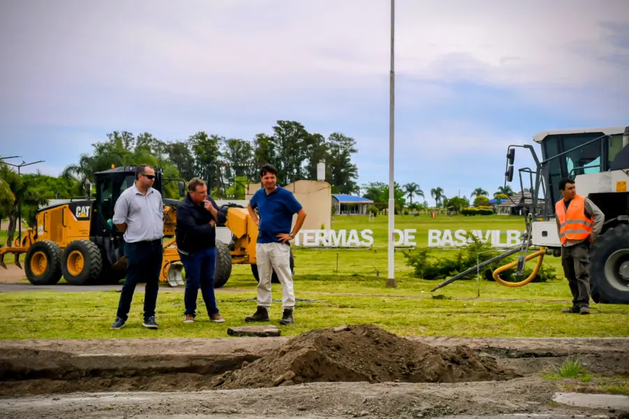 El director administrador de la Dirección Provincial de Vialidad (DPV), Exequiel Donda, recorrió este mièrcoles los frentes de obras, que se ubican frente a las termas de la localidad de Basabilvaso, y en el acceso a Rosario del Tala donde se realizan los trabajos finales de la rotonda de acceso a esa localidad por avenida San Martín.