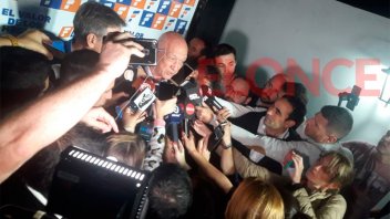 Acompañado por el gobernador Miguel Lifschitz (candidato a diputado) y el concejal Emilio Jatón (candidato a intendente) y ante el <b>Elonce TV</b>, agradeció a "todos los santafesinos que una vez más depositaron la confianza en el Frente Progresista, nuestra lista que es la más votada, a pesar de que nosotros no hemos tenido internas, quiero agradecerles por haber posibilitado que sea la lista más votada".
