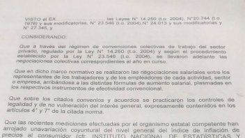 Asimismo, el texto explicita que aquellos acuerdos salariales que ya fueron cerrados a lo largo del año y hayan pactado una revisión "podrán compensar el aumento" con la suma total del plus salarial salvo que las empresas y los gremios acuerdan "expresamente" su no absorción. Otro punto que podría traer debate.