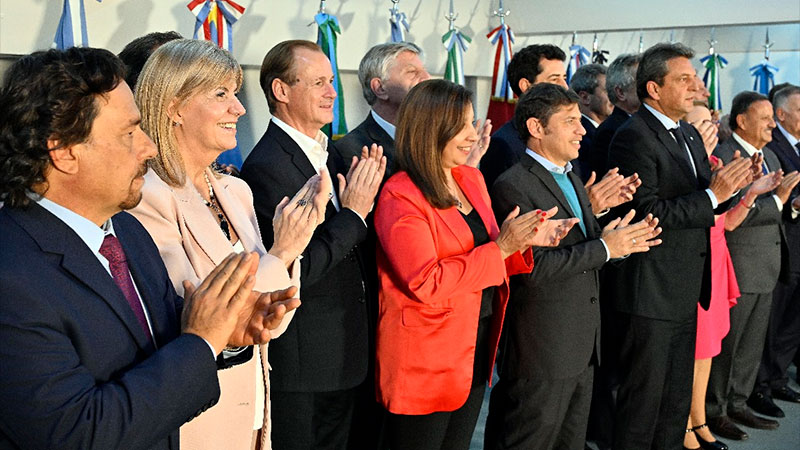 Sergio Massa (Ministro de Economía), Agustín Rossi (Jefe de Gabinete), Eduardo Wado de Pedro (Ministro de Interior), Axel Kicillof (Buenos Aires), Gustavo Sáenz (Salta), Raúl Jalil (Catamarca), Mariano Arcioni (Chubut), Oscar Herrera Ahuad (Misiones), Ricardo Quintela (La Rioja), Sergio Ziliotto (La Pampa), Gildo Insfrán (Formosa), Juan Manzur y Osvaldo Jaldo (Tucumán), Gustavo Bordet (Entre Ríos), Jorge Capitanich (Chaco), Gerardo Zamora (Santiago del Estero), Alicia Kirchner (Santa Cruz), Gustavo Melella (Tierra del Fuego), Sergio Uñac (San Juan), Omar Perotti -de forma online- y Alejandra Rodenas (Santa Fe), Alberto Rodríguez Sáa (San Luis), Omar Gutiérrez (Neuquén), Arabela Carreras y Alberto Weretilneck (actual y electo de Río Negro).