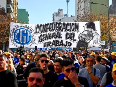 "Si el Gobierno sigue así, va camino a la destrucción de la patria", expresó el dirigente cegetista Julio Piumato, jefe del gremio de Judiciales, desde la movilización, convocada bajo la consigna "El trabajo es sagrado".