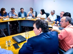 En la sala de reuniones del segundo piso de Casa de Gobierno se dieron cita los presidentes de la Comisiones de Presupuesto y Hacienda, Rubén Dal Molín (Federación – Juntos por Entre Ríos), y de Legislación General, Jaime Benedetti (Gualeguaychú – Juntos por Entre Ríos), junto a los senadores Víctor Sanzberro (Victoria – Más por Entre Ríos), Juan Pablo Cosso (Villaguay – Más para Entre Ríos), Nancy Miranda (Federal – Más para Entre Ríos) Rafael Cavagna (Nogoyá – Juntos por Entre Ríos), Rubén Méndez (Islas – Juntos por Entre Ríos), Ramiro Favre (Colón – Juntos por Entre Ríos), Gustavo Vergara (Diamante – Juntos por Entre Ríos), Martín Oliva (Uruguay – Más para Entre Ríos) y Gladys Domínguez (Feliciano – Más para Entre Ríos).